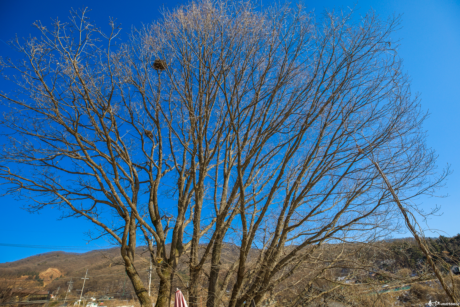 주변을 조금 더 돌아보니 이렇게 멋진 참나무가 하늘을
